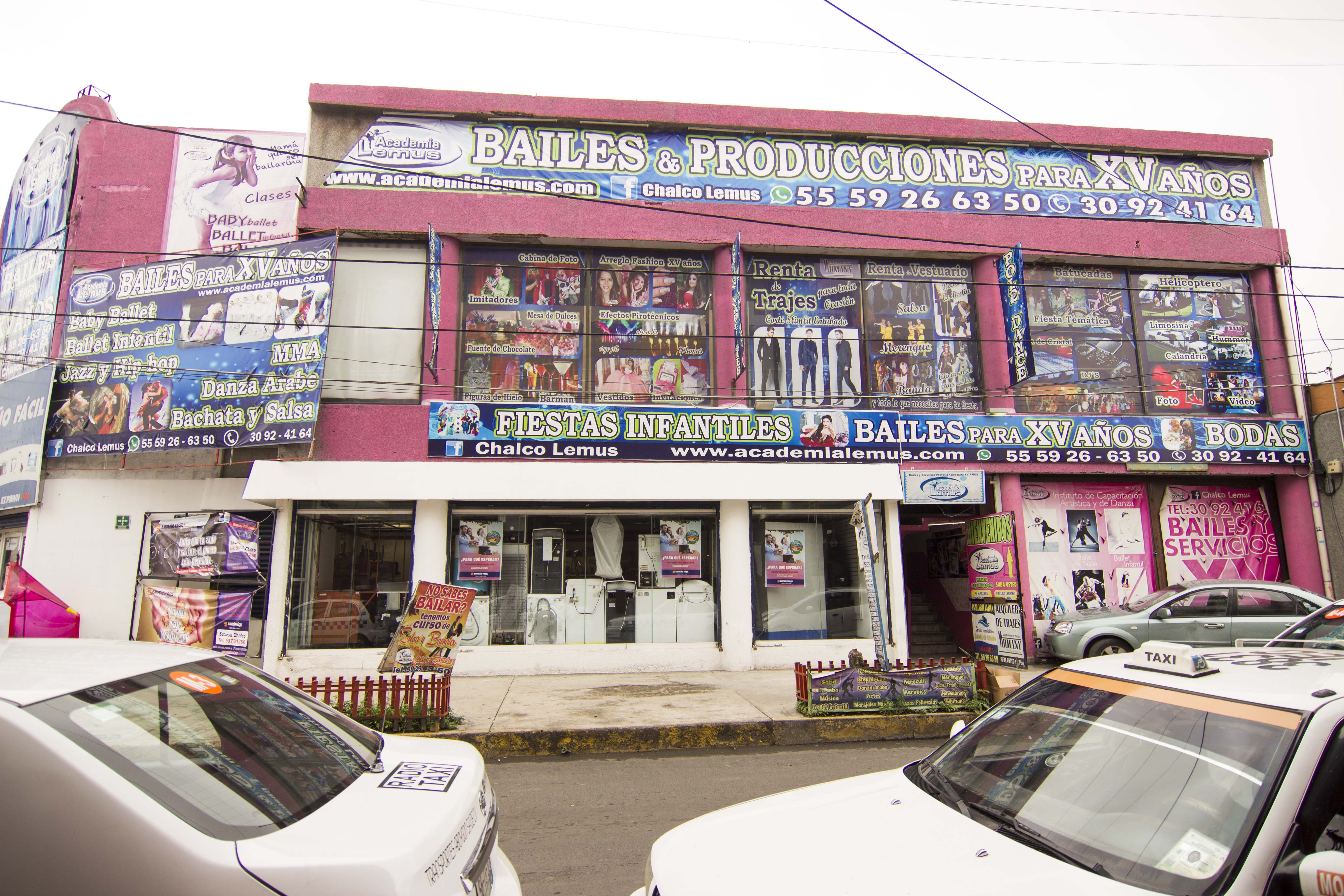 Home Inicio / Sucursales / Sucursal Chalco Dirección Av Cuauhtémoc oriente #1 Colonia Centro, Chalco Esquina con Jose Maria Morelos Contacto 55-5926-6350 CONTÁCTANOS Enviar Más Servicios de Academia Lemus Lo esencial para toda Festejada o Quinceañera. Contamos con Coreografías Originales, Vestuario o Trajes de Gala, Maquillaje Conservador o totalmente innovador, Efectos Especiales para ese momento especial, los mejores Diseños de Vestido y los modelos únicos de Invitaciones. Recuerdos Revive una y otra vez ese Evento Espectacular teniéndolos guardados en los mejores formatos: - Videofilmación Full HD, Blu Ray y 4K - Fotobook - Fotobook de Firmas - Banner - Foto de Estudio Ambientación y Animación Ten todo lo necesario para que mantener a ti y tus invitados en ese ambiente festivo con: - Adorno con Globos. - Fiesta Temática - Pista de Cristal - Pantalla Gigante - DJ e Iluminación - Cabezas Robóticas - Fiesta Temática - Imitadores - Batucada Plus Realiza tu evento de acuerdo a las últimas tendencias de la moda(Trending), con los mejores servicios: - Limousines, Convertibles, Calandrias, Autos Clásicos, Helicopteros, etc - Figuras de Hielo - Fuente de Chocolate, Chamoy y Queso - Mesa de Postres o Carnes Frias - Candy Bar - Cabina de Fotos - Vuelo Papillo - Cocktelería y Servicio de Barman Encuéntranos en